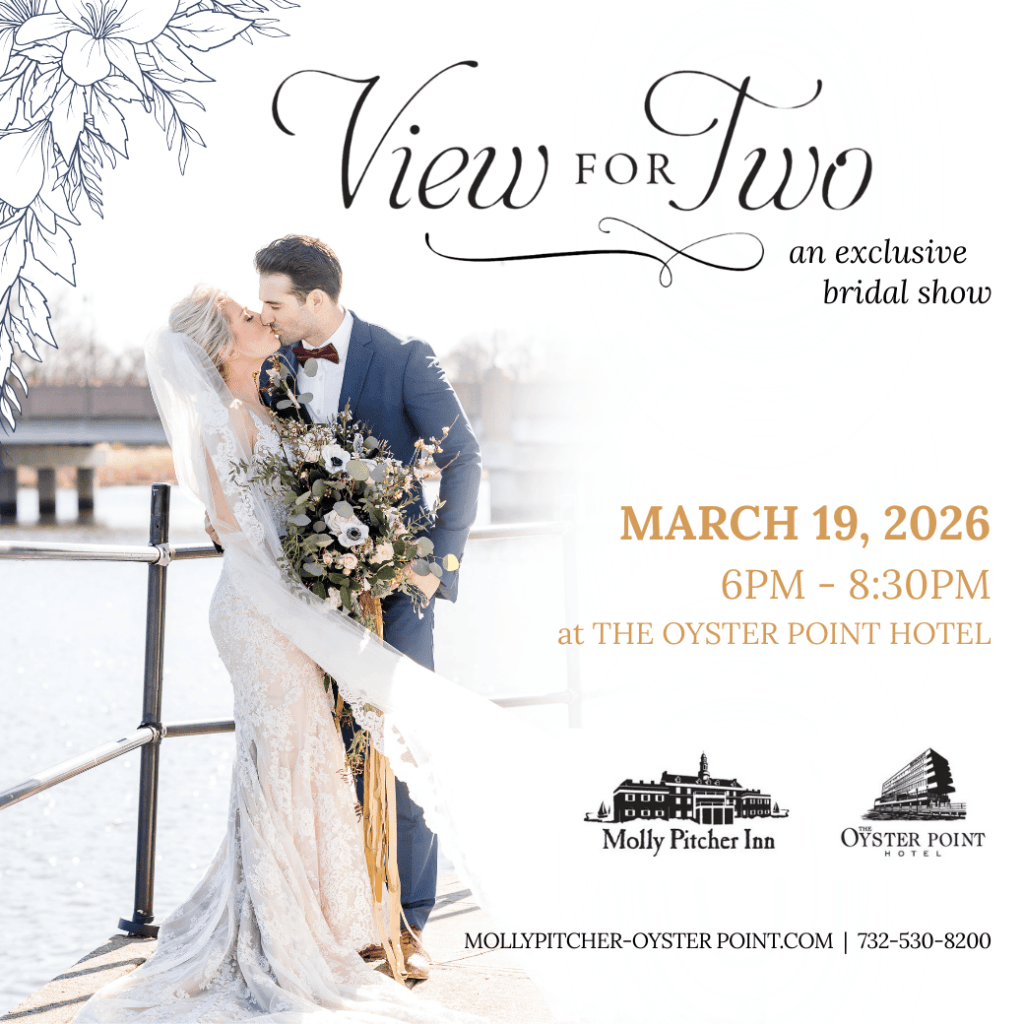 Join us for The View For Two: An Exclusive Bridal Show, on March 19, 2026. It’s the perfect opportunity to explore our newly renovated spaces at The Oyster Point Hotel and see how our refreshed look elevates every celebration along the Navesink. We’ll also be joined by many of our preferred wedding vendors, offering inspiration, guidance, and everything you need to start planning your perfect day.